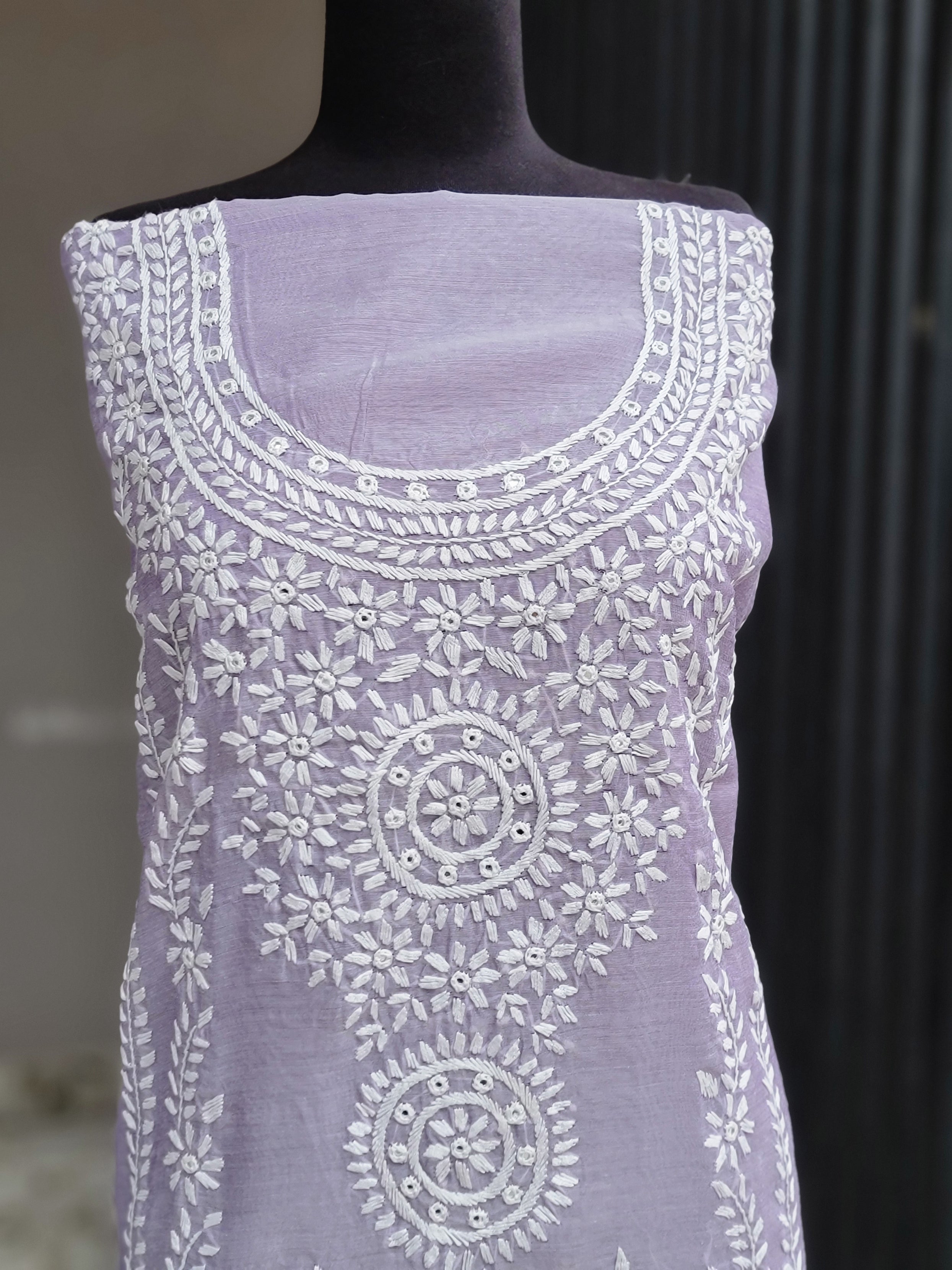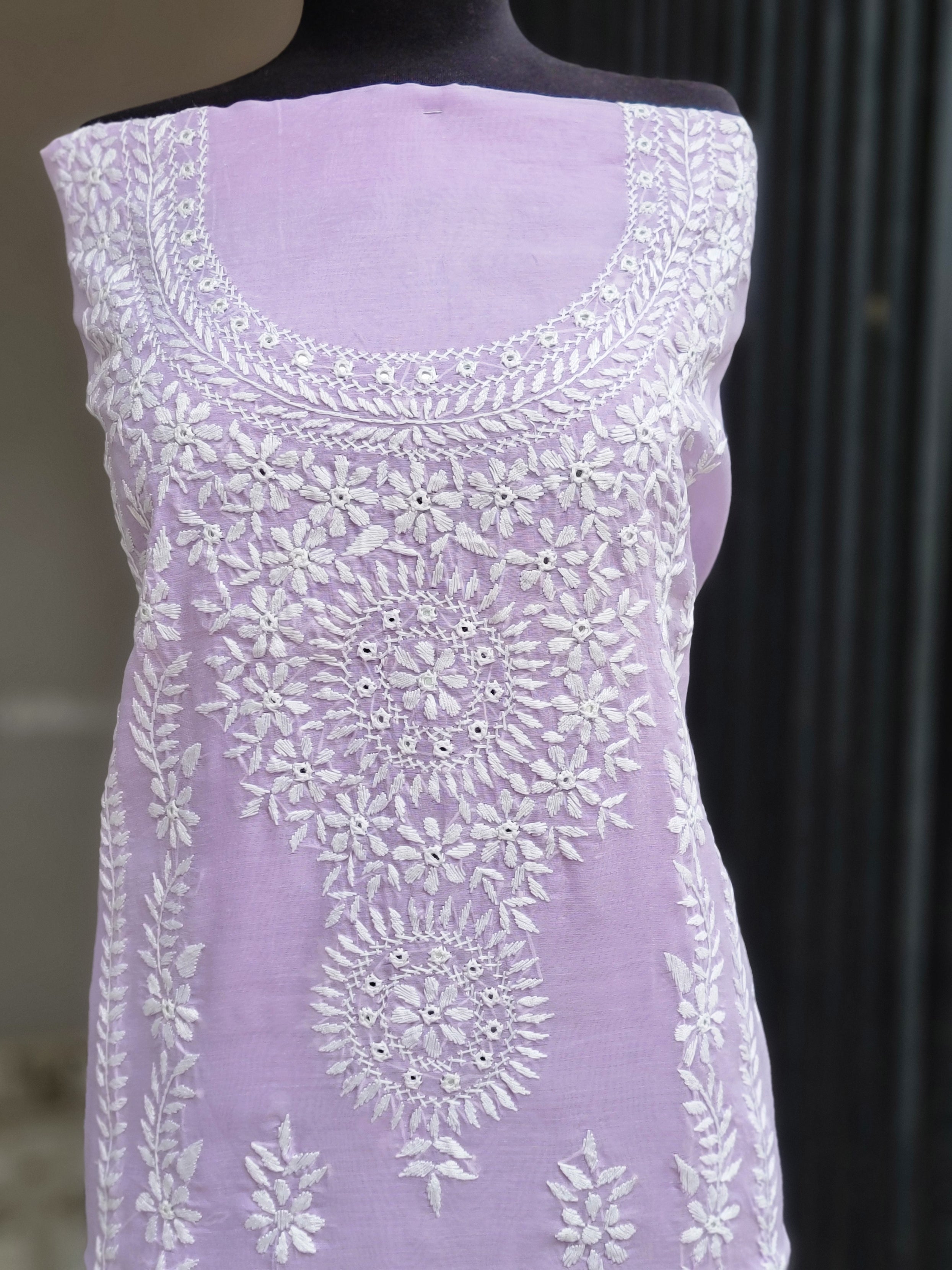 Experience the elegance of tradition with our Chikankari. Designed on premium paper cotton fabric, this unstitched suit combines the timeless charm of handcrafted chikankari embroidery with the delicate artistry
